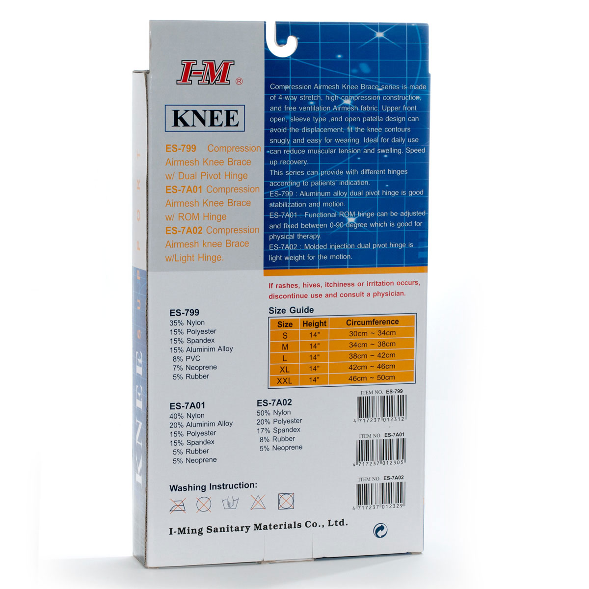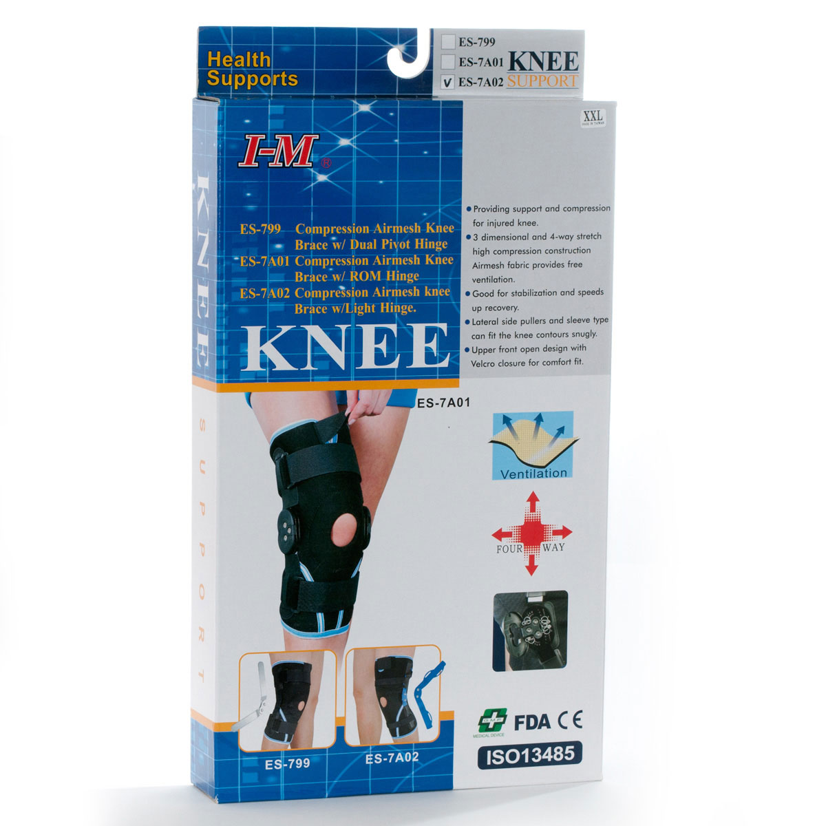 ES-7A02 Compression Airmesh Knee Brace w/ Light Hinge (Sleeve Type)